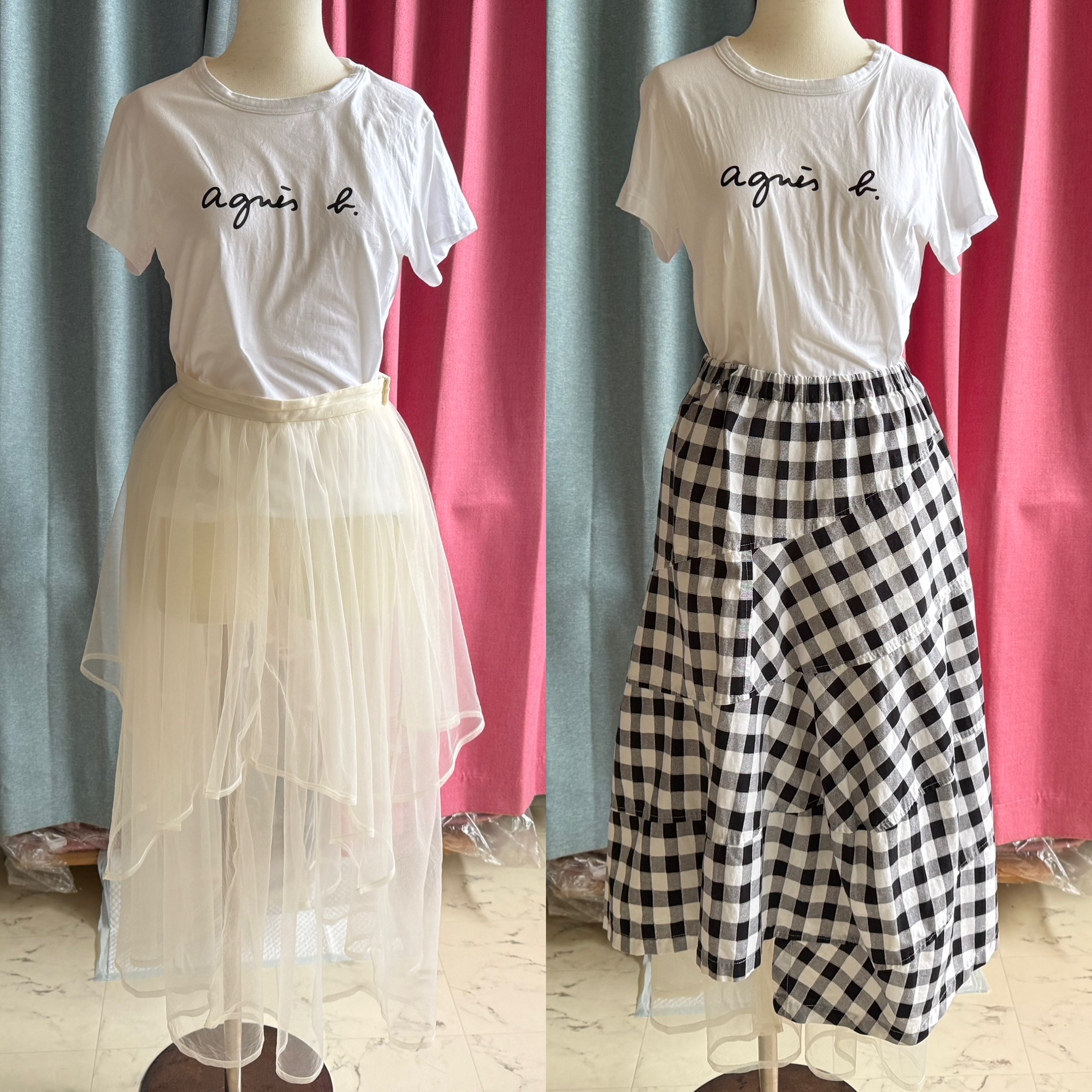 なので今日はそのスカートと、以前ショップで購入したアニエスベーを合わせてコーデしてみました。
